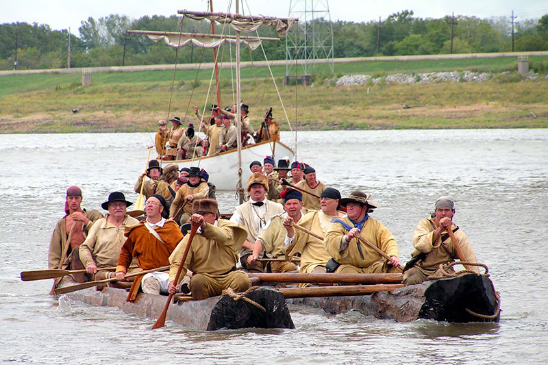 Following the Journals, the crew started up the Missouri River on May 14, 200 years after Lewis and Clark. They arrived in St. Charles, Missouri 2 days later during the St. Charles Bicentennial Signature Event. The next 4 years would include journeys on the Ohio, Mississippi and Missouri Rivers, across the Great Rocky Mountains down the Columbia to the Pacific and back again. Dozens of cities and river towns were visited with a variety of re-enactments, celebrations, ceremonies and educational presentations.